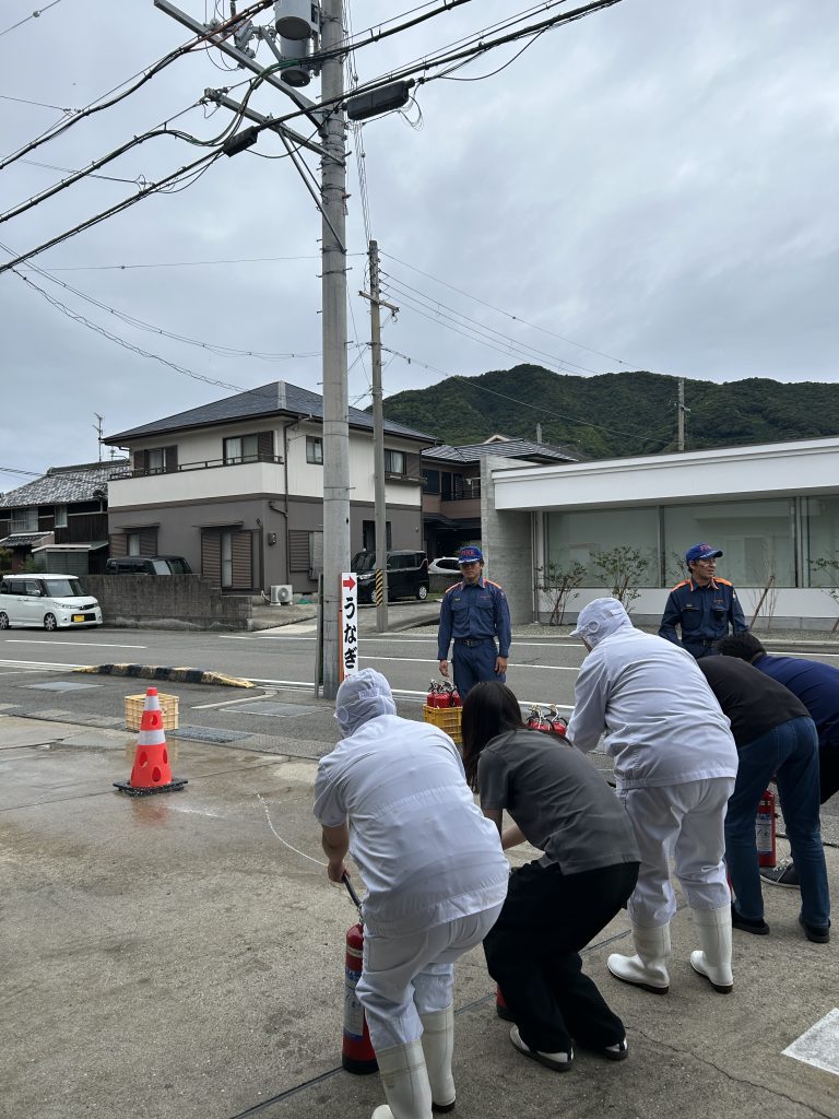 訓練用の消火器を使いながら、正しい手順や注意点を一人ひとり確認しました!