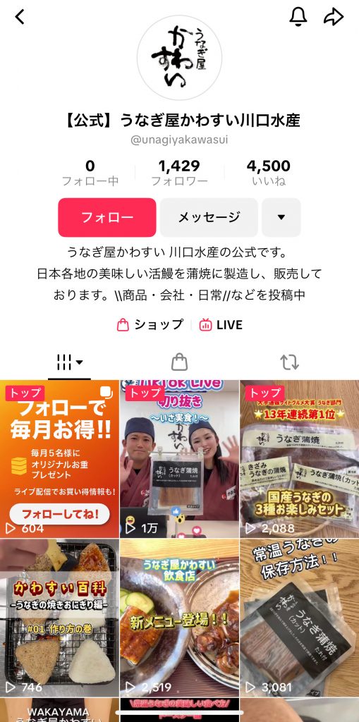 実は、うなぎ屋かわすい公式もTikTokに進出しているんです!!!