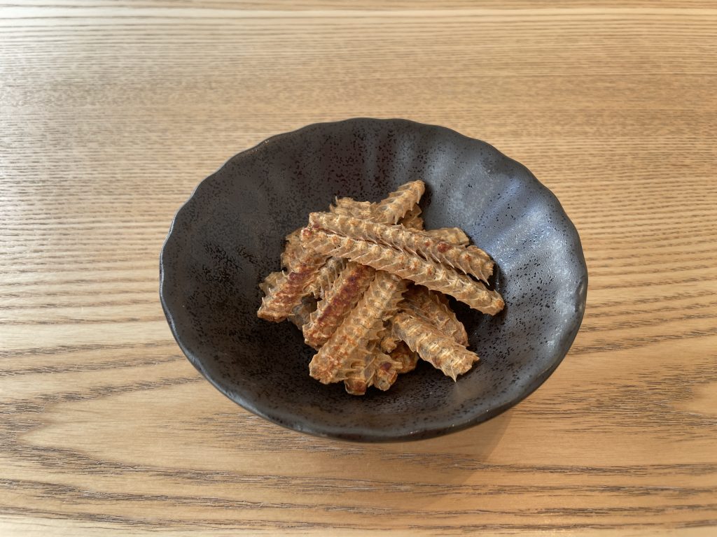 クセになるサクサク食感と鶏ガラ塩味でお酒にもピッタリの一品です。私も試食しましたが、骨とは思えないほどすごく美味しかったです!!カルシウム補給もできて◎