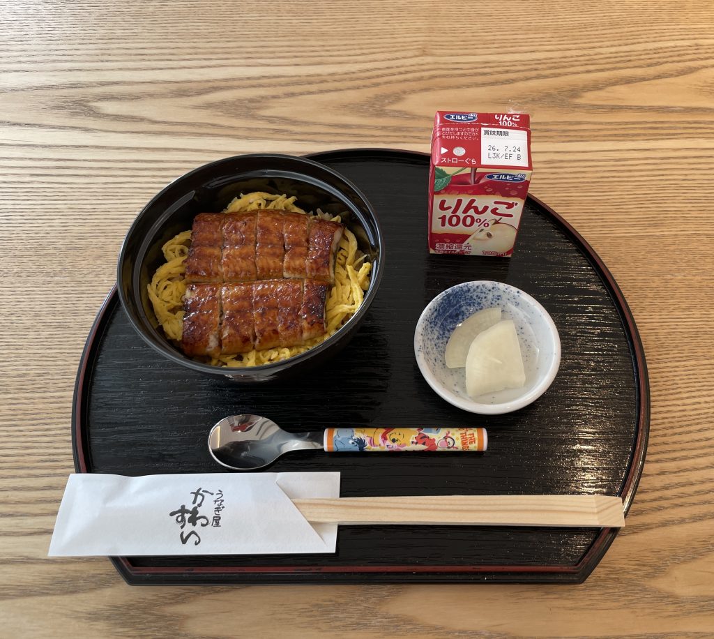 ●お子様うな丼 ミニジュース付き 1200円(税込) ※小学生以下限定
