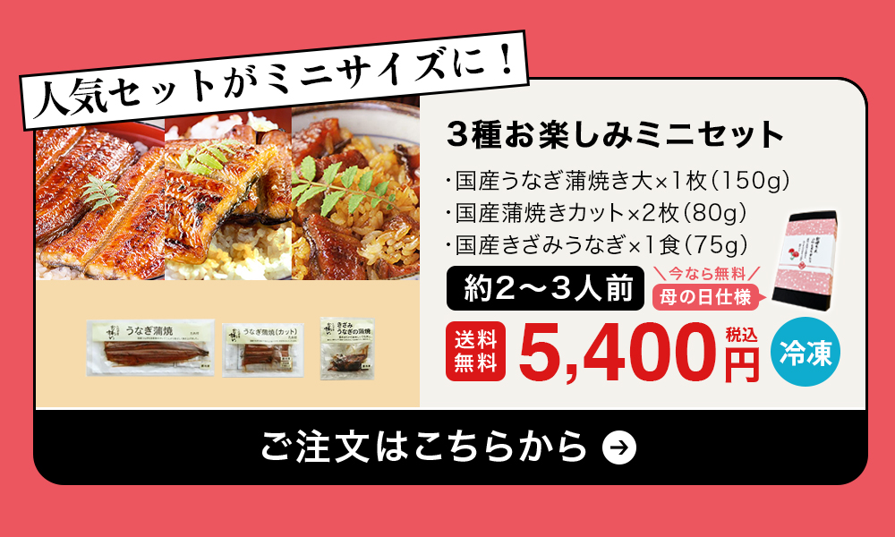 他の画像を見る 当店で一番人気商品の長焼きだけミニサイズに! \超早割!母の日ボックスが無料/国産うなぎの3種お楽しみミニセット[お祝い お誕生日のプレゼントにも!] WEB本店特別価格 ¥ 5,400 税込 詳細を見る お気に入りに登録する