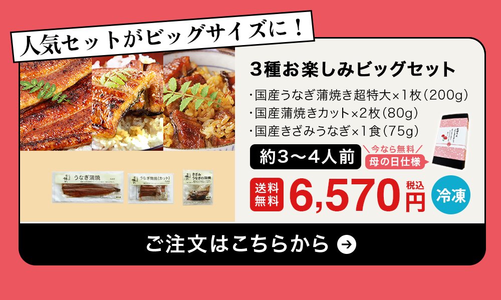 他の画像を見る 当店で一番人気商品の長焼きだけビッグサイズに! \超早割!母の日ボックスが無料/国産うなぎの3種お楽しみビッグセット[お祝い お誕生日のプレゼントにも!] WEB本店特別価格 ¥ 6,570 税込 詳細を見る お気に入りに登録する