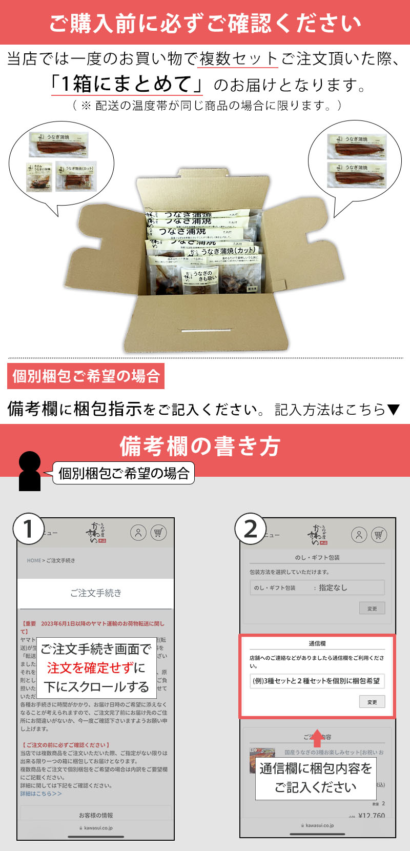 個別に梱包をご希望の際は、ご注文時「通信欄」に梱包の内訳をご記入ください。