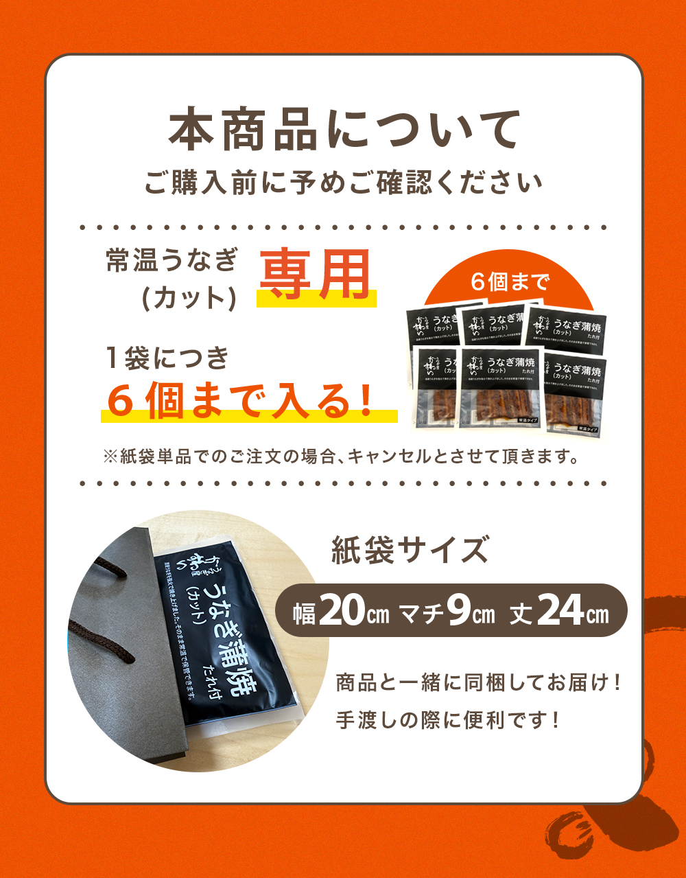 【常温うなぎ蒲焼きカット専用】ギフト用手提げ袋