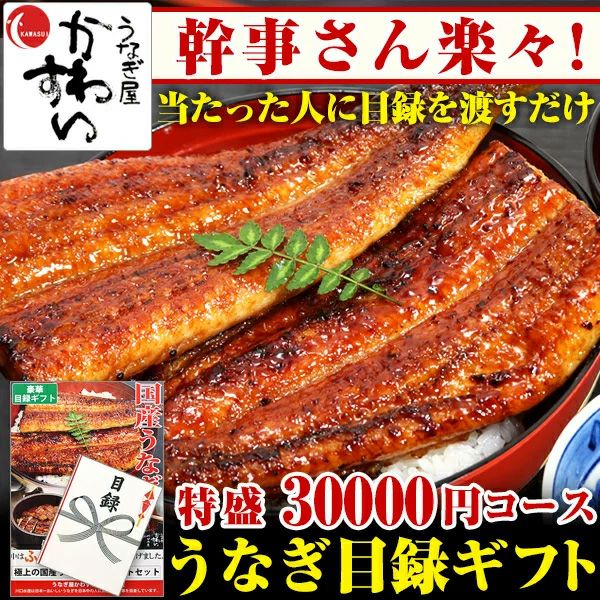 [幹事さん楽々]国産うなぎの目録ギフト国産うなぎ蒲焼き並盛りセット[3万円コース 景品 目録 グルメギフト]