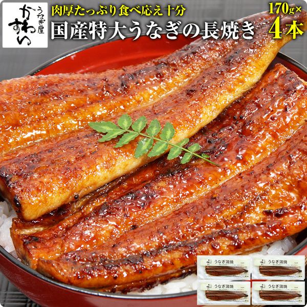 特大サイズの国産うなぎ蒲焼き170g×4本