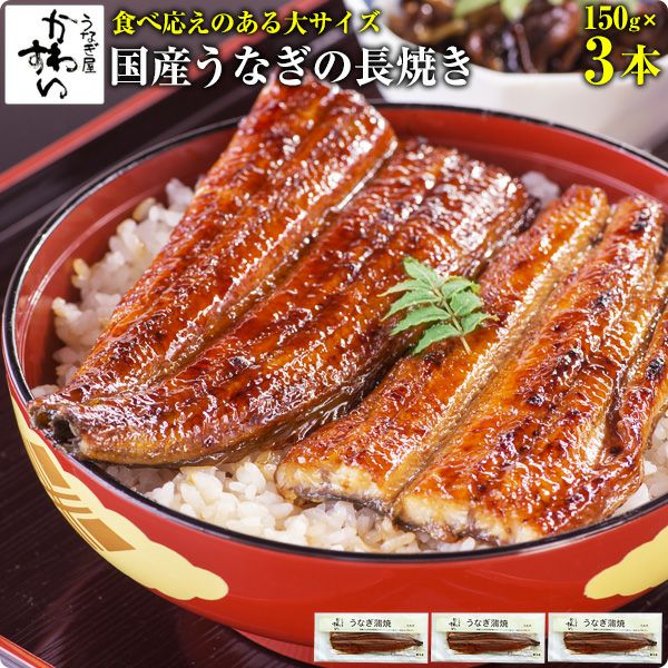 国産大サイズうなぎ蒲焼き 150g×3本(送料無料 鰻 ギフト)