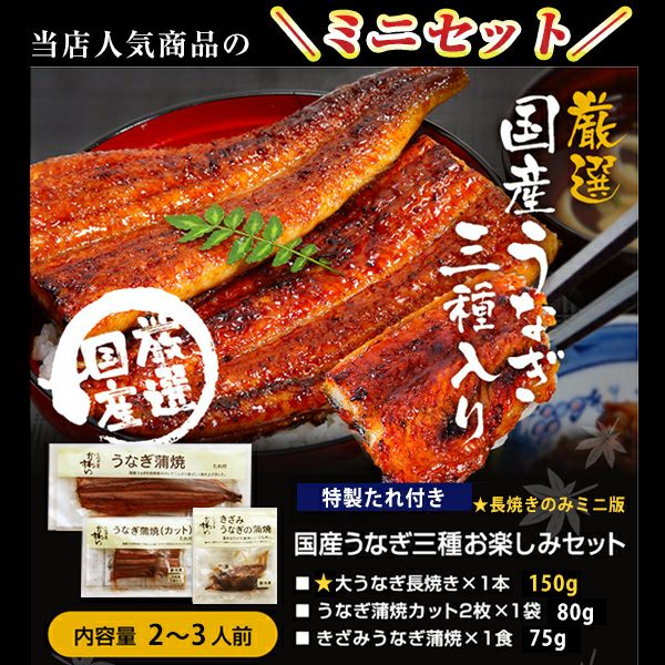 他の画像を見る 当店で一番人気商品の長焼きだけミニサイズに! 国産うなぎの3種お楽しみミニセット[お祝い お誕生日のプレゼントにも!] WEB本店特別価格 ¥ 5,680 税込 詳細を見る お気に入りに登録する