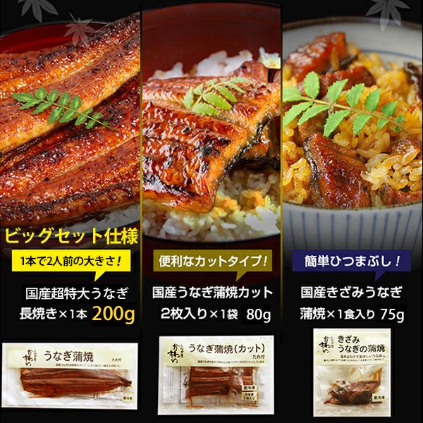 他の画像を見る 当店で一番人気商品の長焼きだけビッグサイズに! 国産うなぎの3種お楽しみビッグセット[お祝い お誕生日のプレゼントにも!] WEB本店特別価格 ¥ 6,910 税込 詳細を見る お気に入りに登録する