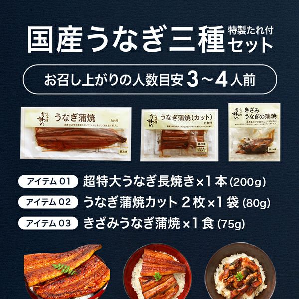 他の画像を見る 当店で一番人気商品の長焼きだけビッグサイズに! 国産うなぎの3種お楽しみビッグセット[お祝い お誕生日のプレゼントにも!] WEB本店特別価格 ¥ 6,570 税込 詳細を見る お気に入りに登録する