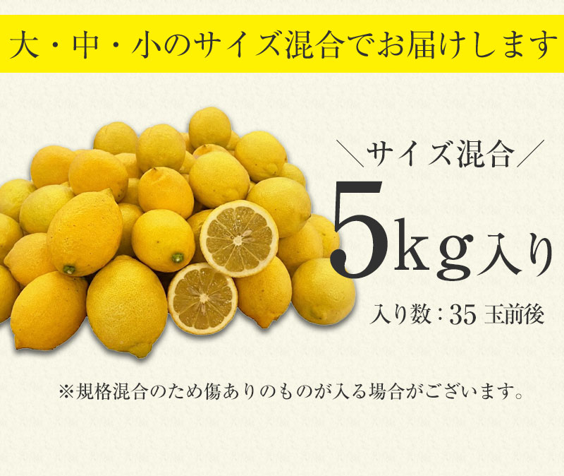 [1月下旬以降発送]寺嶋さんの有田産レモン5キロ サイズ:大・中・小の混合[有田産 和歌山 れもん 檸檬 訳あり 傷あり 柑橘]
