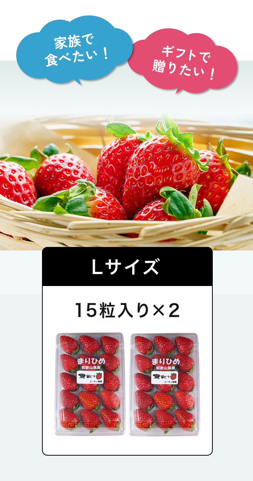 [収穫次第順次発送]【数量限定】ユーキン農園さんのイチゴ 15粒×2パック Lサイズ[まりひめ いちご 和歌山 果物]