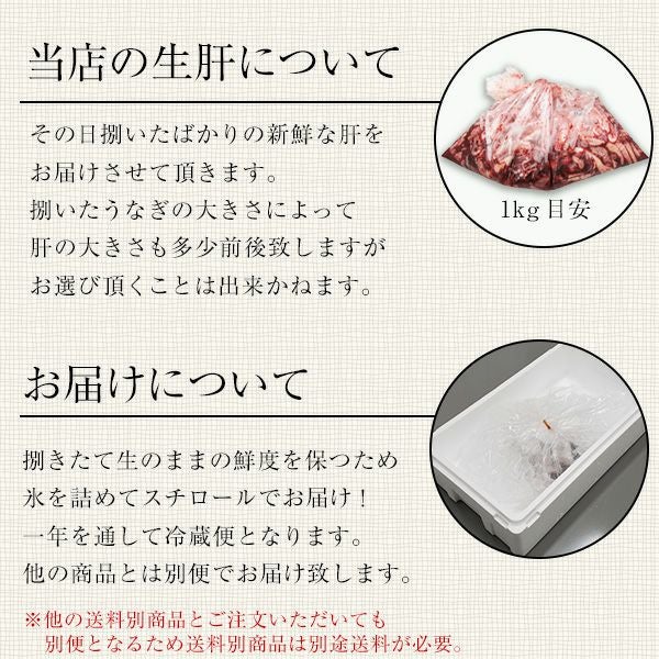 他の画像を見る 専門店ならではの品質! [冷凍便]国産うなぎの冷凍生肝1キロ[業務用 国内産 店舗用 卸売] 冷凍肝 冷肝 冷凍きも 生きも 生キモ WEB本店特別価格 ¥ 1,900 税込 カートに入れる お気に入りに登録する