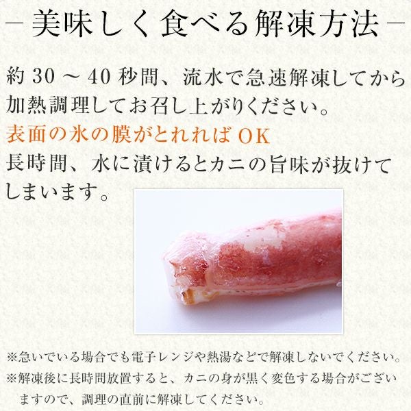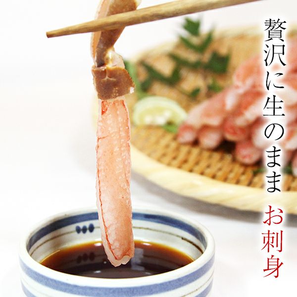 他の画像を見る 鮮度抜群!生食可!食べやすい棒ポーション 生ズワイガニ 棒 20本 500g [ズワイガニ かに カニ 蟹 生食] WEB本店特別価格 ¥ 5,790 税込 カートに入れる お気に入りに登録する