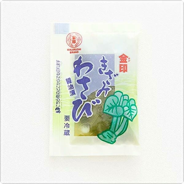 他の画像を見る チョットあったら便利一品 きざみわさび 醤油漬け5g 100個セット(金印) <小袋・小分け> WEB本店特別価格 ¥ 2,980 税込 こちらの商品は冷凍保管になります。冷蔵庫で保管されると辛味がとびますのでご注意ください。 カートに入れる お気に入りに登録する